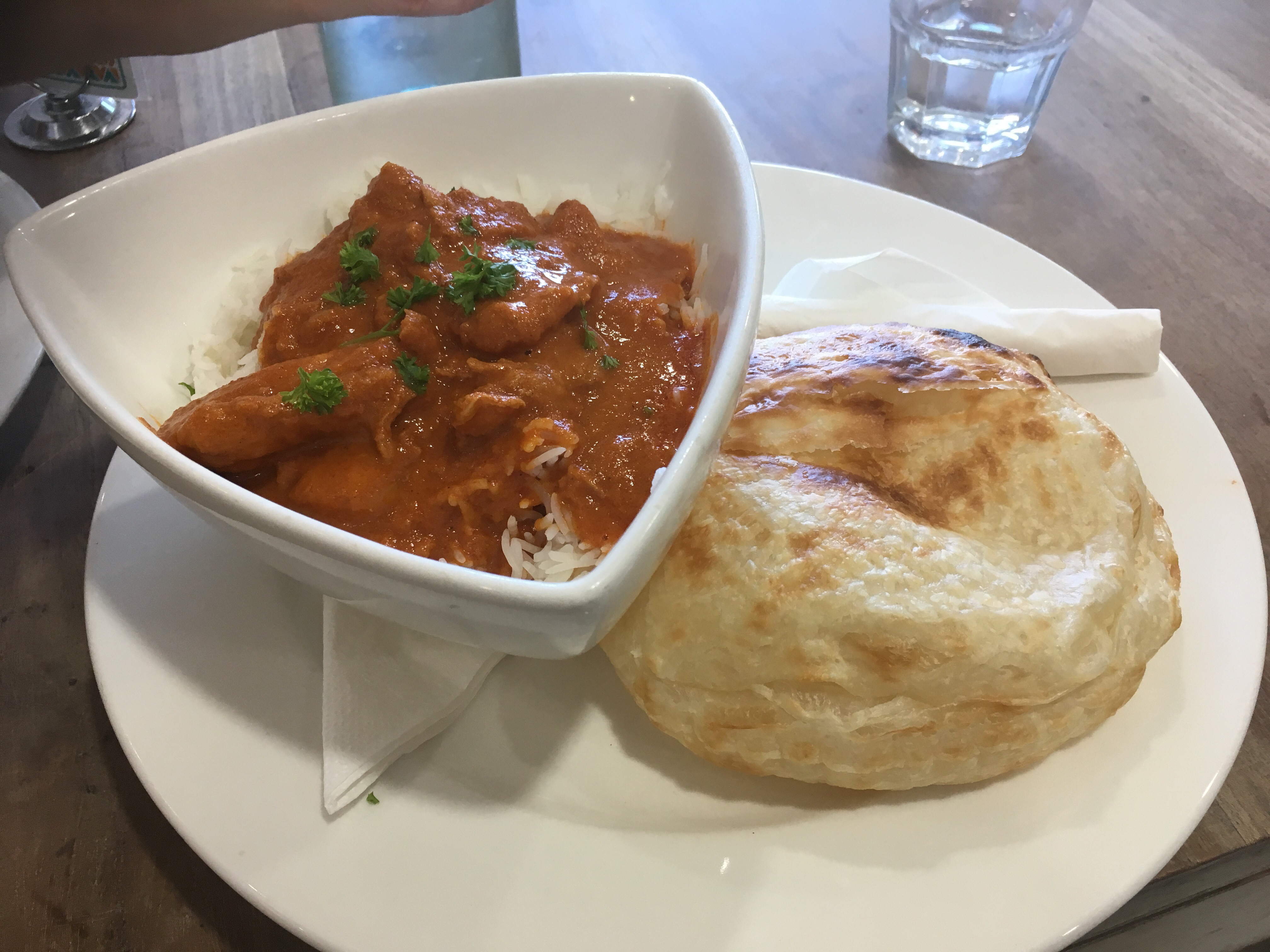 Cafe Jilarty at Rainbow – Really cool cafe very close to the beach. They do a big range of homemade food ranging from turkish flatbreads to curries. They also have really good backpacker deals on and we were really hungry after swimming in the sea so we both ordered the butter chicken. After that, we had their cold brew coffee which was also really good