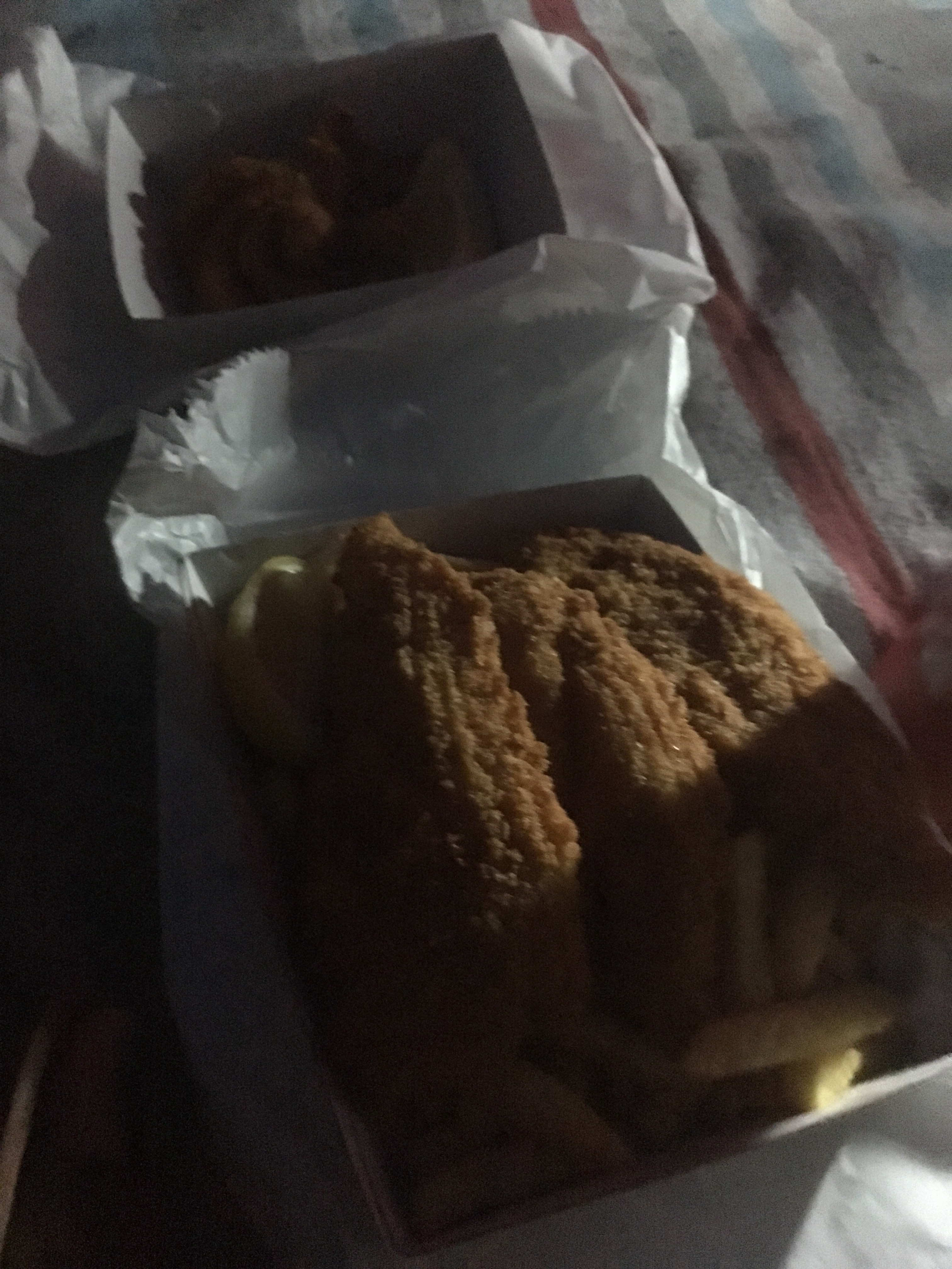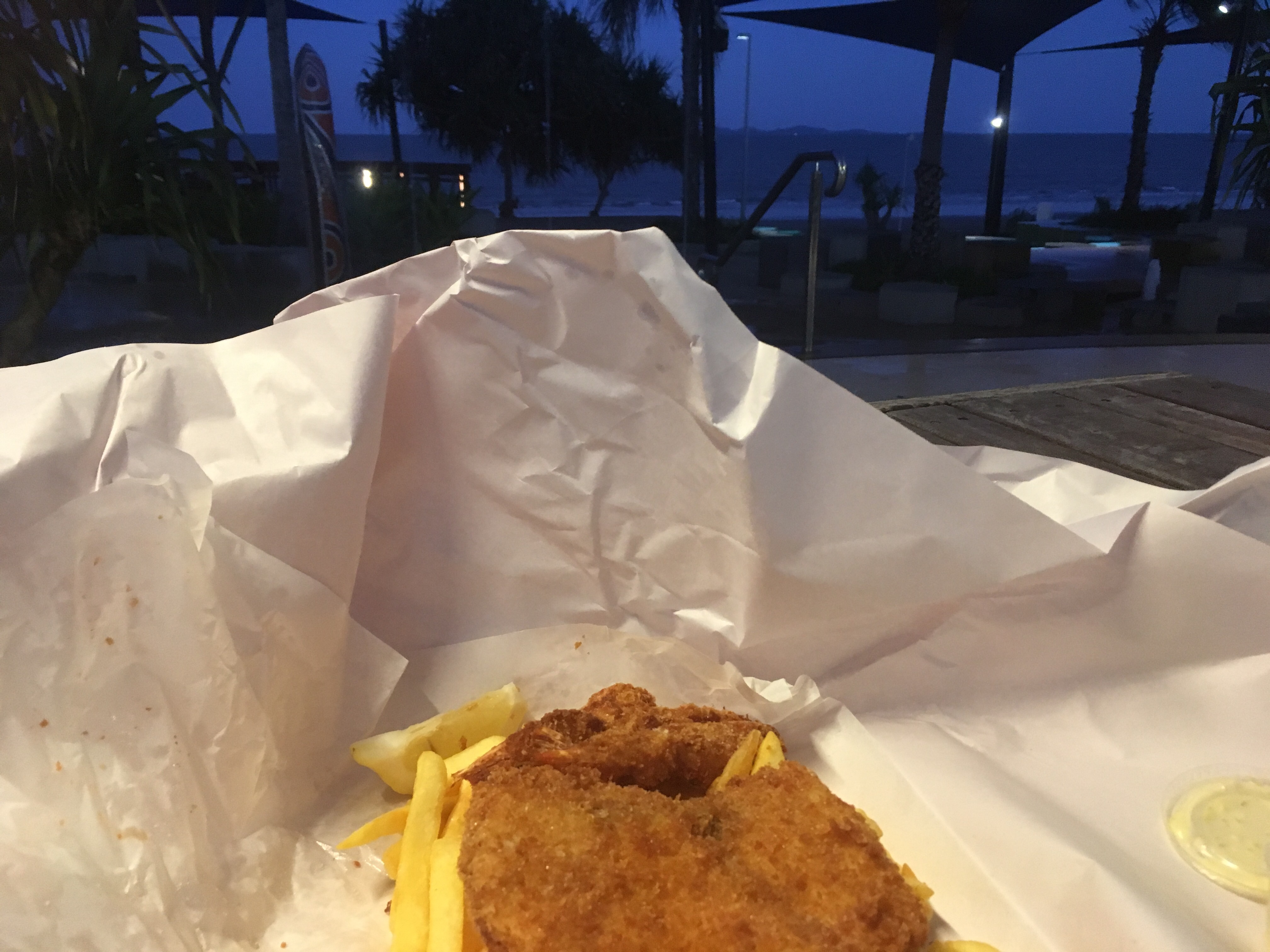 Maddigans Seafood – Our hosts took us here on our last night in Hervey Bay. You can’t really see the picture because it was dark as we ate it on a picnic blanket on the esplanade at sunset. We had the sweetlip and chips and calamari hand. The calamari was amazing!!