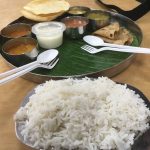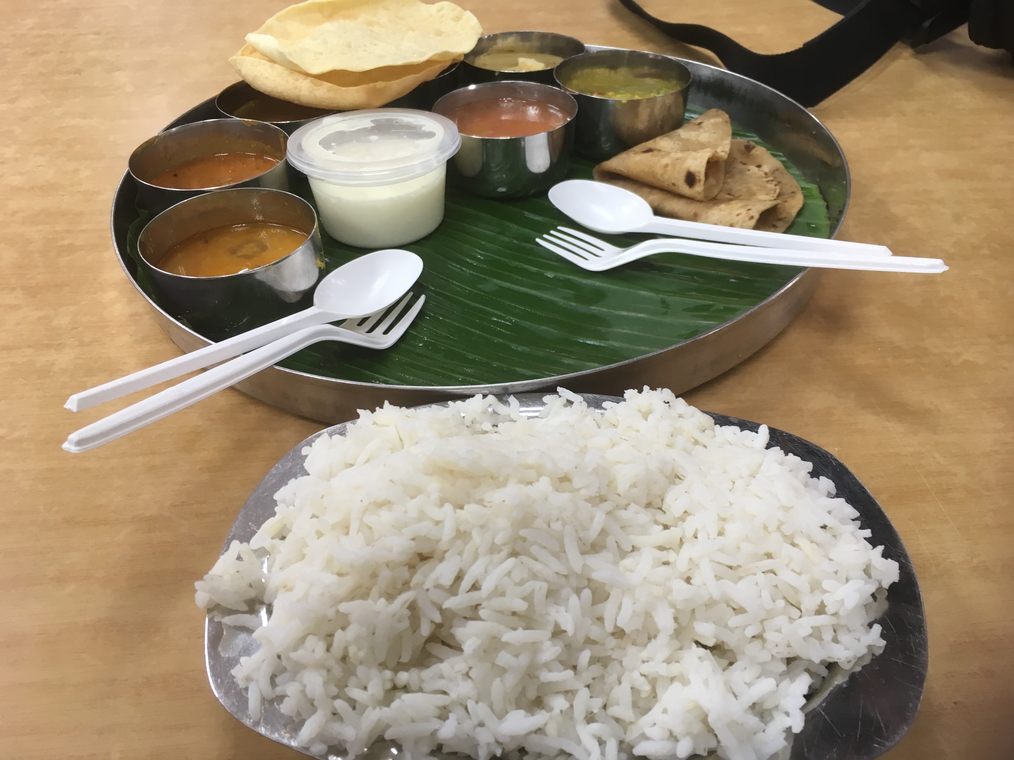 A Vegetarian Thali which is like a vegetarian platter with various dips, sauces, rice and veg. We had this in front of Batu Caves and it was really good. It cost £1.80!