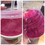We have discovered a love of dragonfruit! Really refreshing as a smoothie or sliced. If you like red berries, you’ll like dragon fruit.