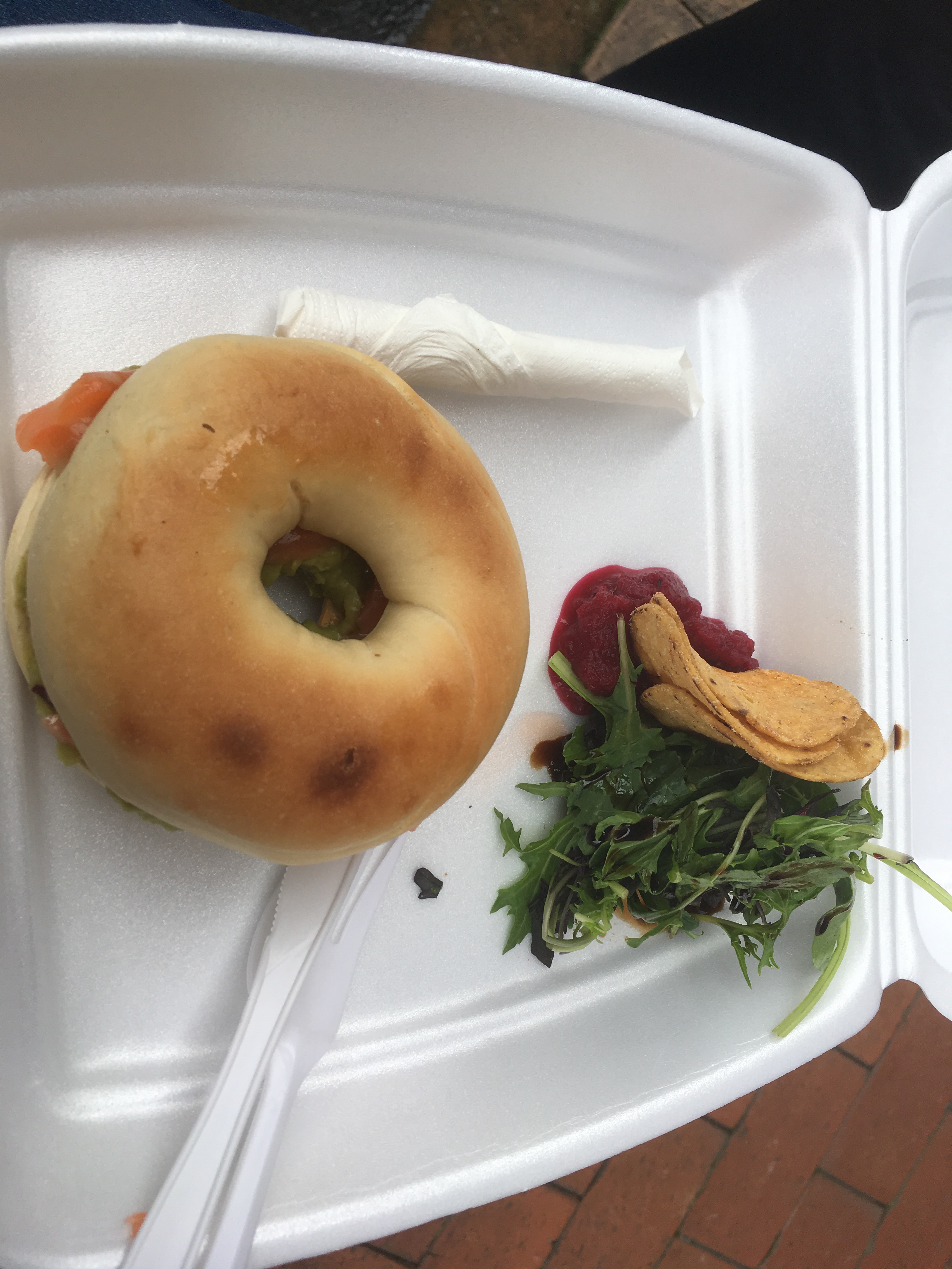 Be Rude Not To Cafe – Cute cafe with a good light lunch selection. I got a takeaway salmon and avocado bagel which was delicious. Paul got a pie which he loved.