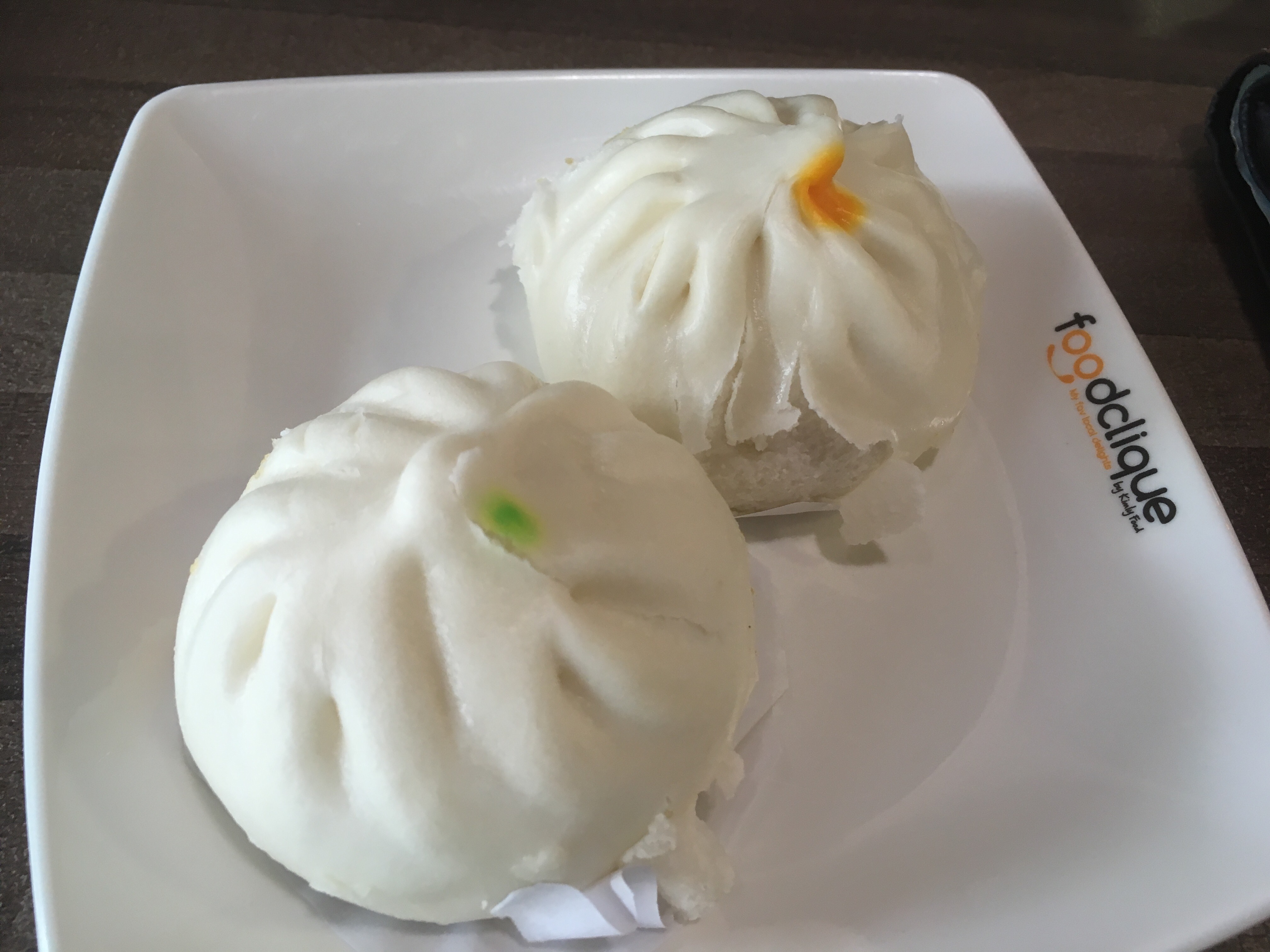 We have eaten quite a lot of these buns (bao) and you will always find them on a dim sum stall. One of these is a char sui bun and the other is a vegetable one. We love them.