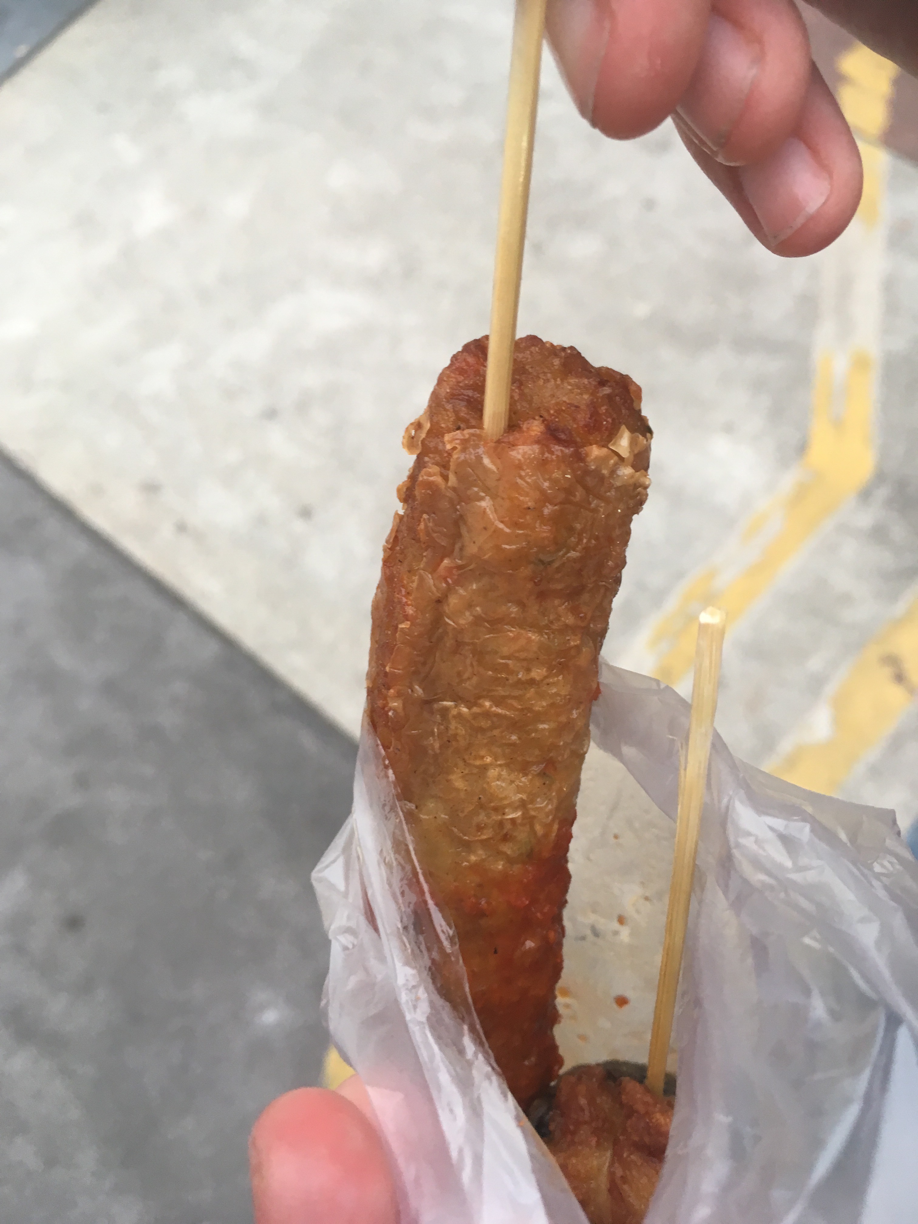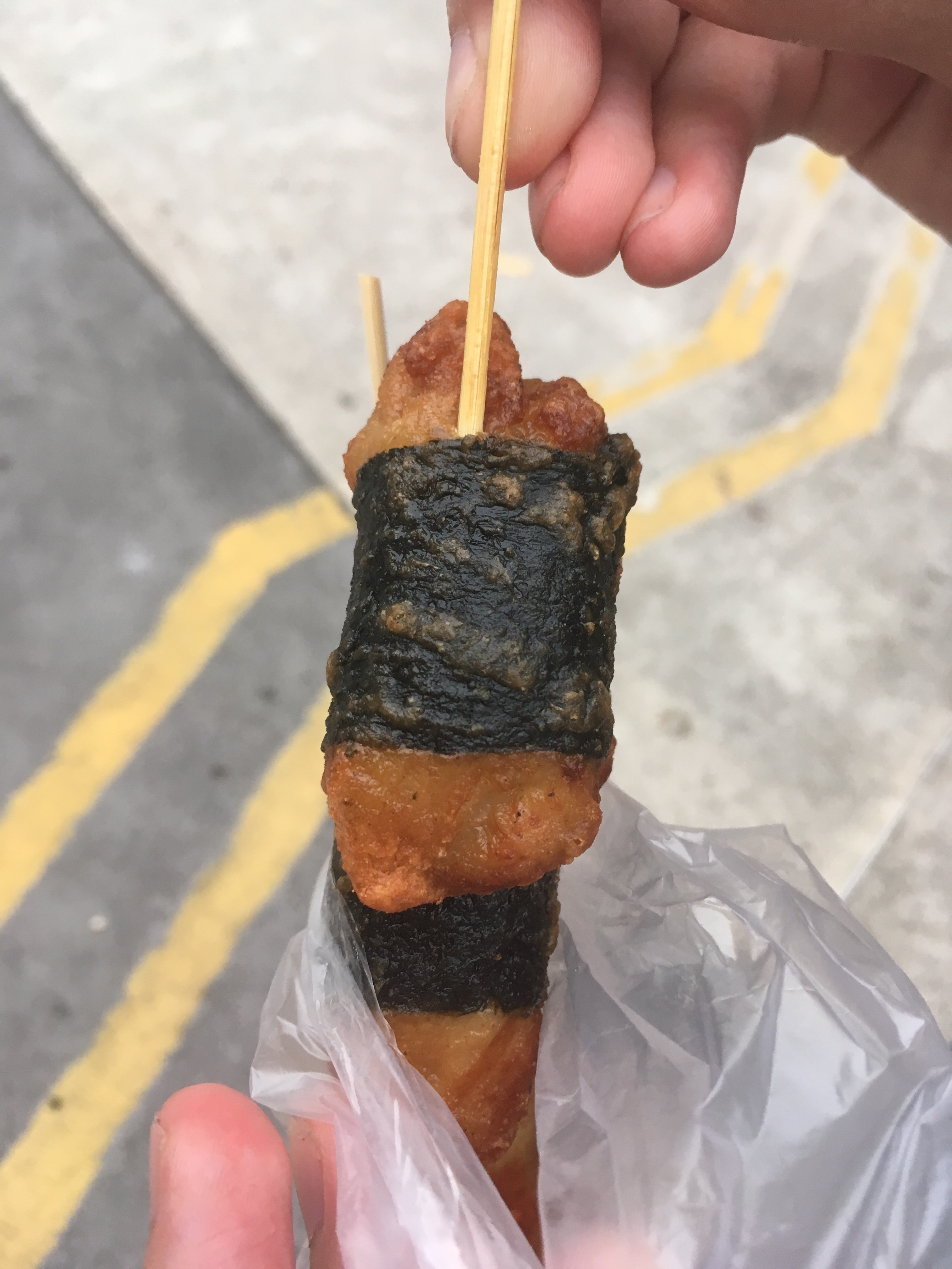 We have also eaten quite a lot of things on sticks. This was fried chicken wrapped in seaweed.