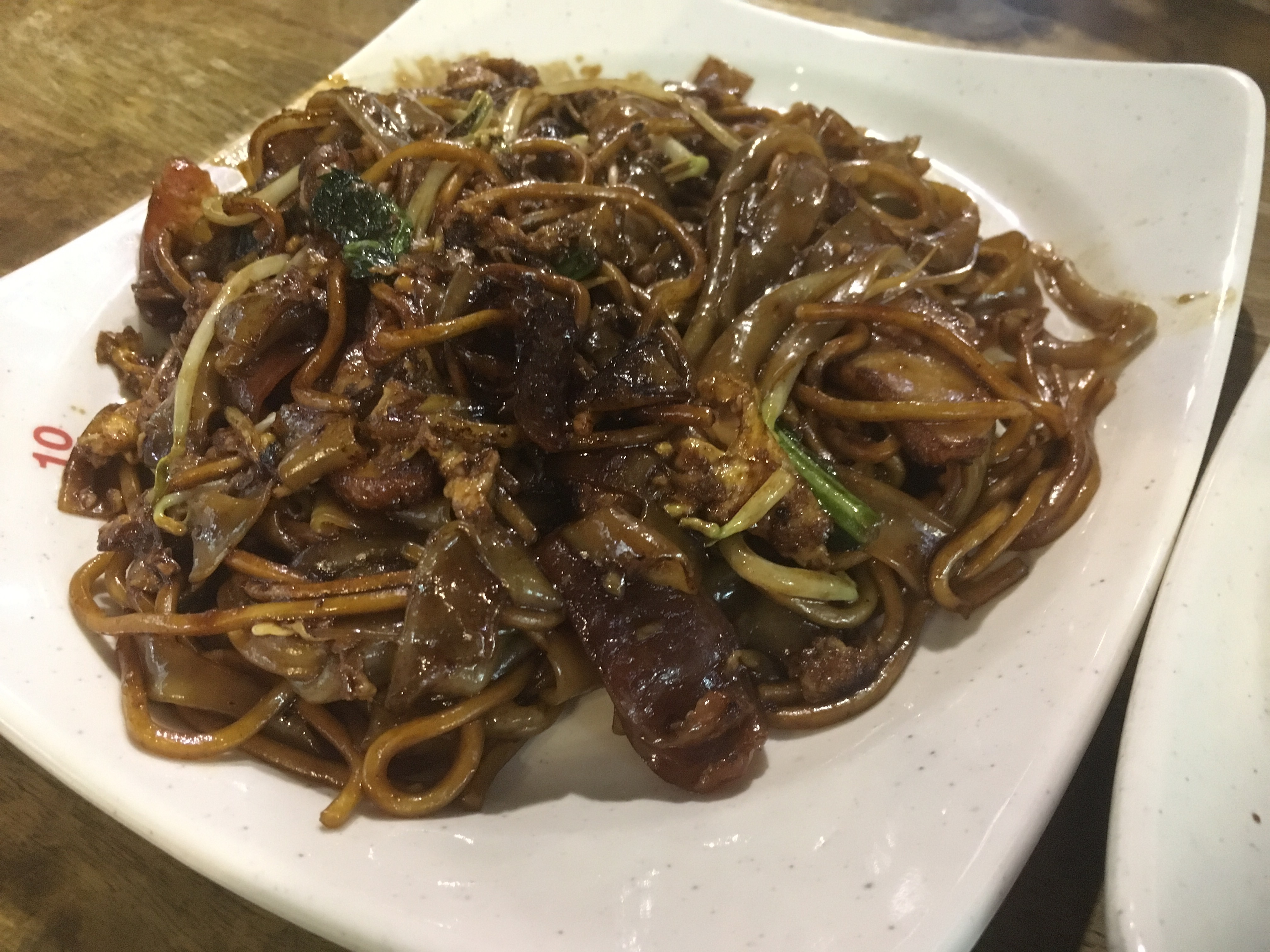 Char Kway Teow is a national favourite and is basically stir fried rice noodles with veg and can have various fillings. There were cockles in ours (which is the norm) but not sure what else. It is cooked in pork fat so we shared it!