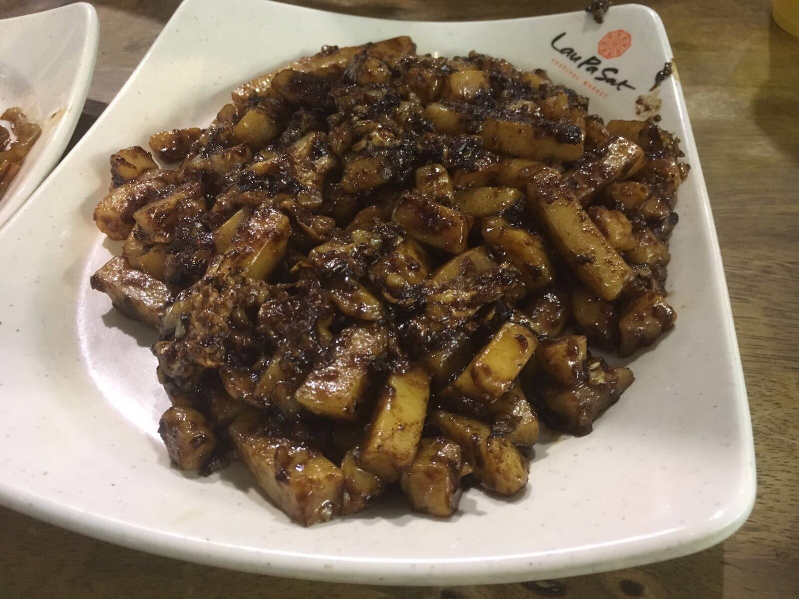 Another variation of fried carrot cake and another national favourite. You can get it white or black and we opted for black which means it has been fried with molasses. It’s white radish steamed then fried with garlic, spring onions and preserved radish.