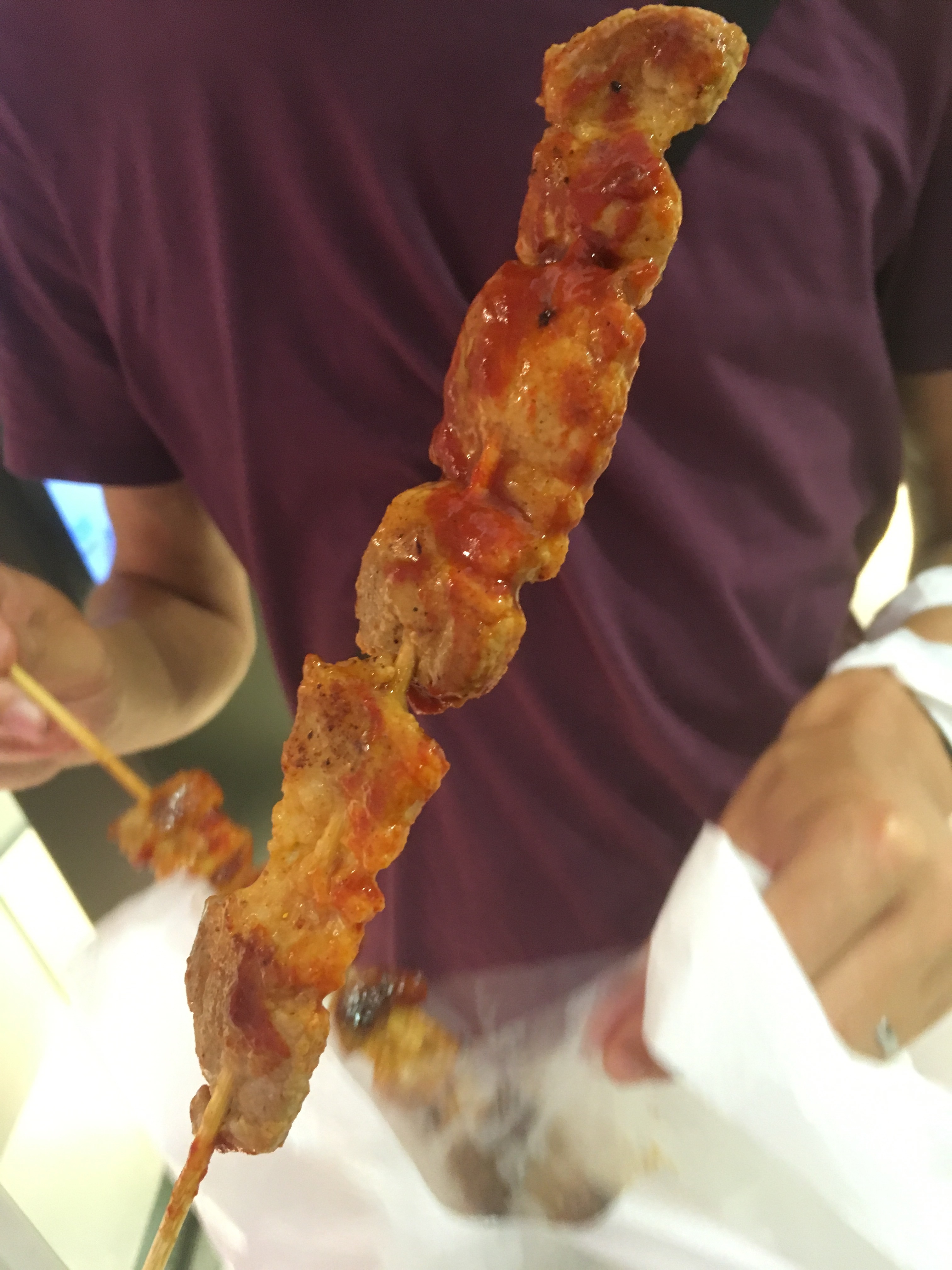 This was from a Korean stall and was pork dipped in chilli sauce on a stick.