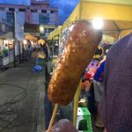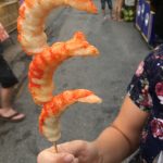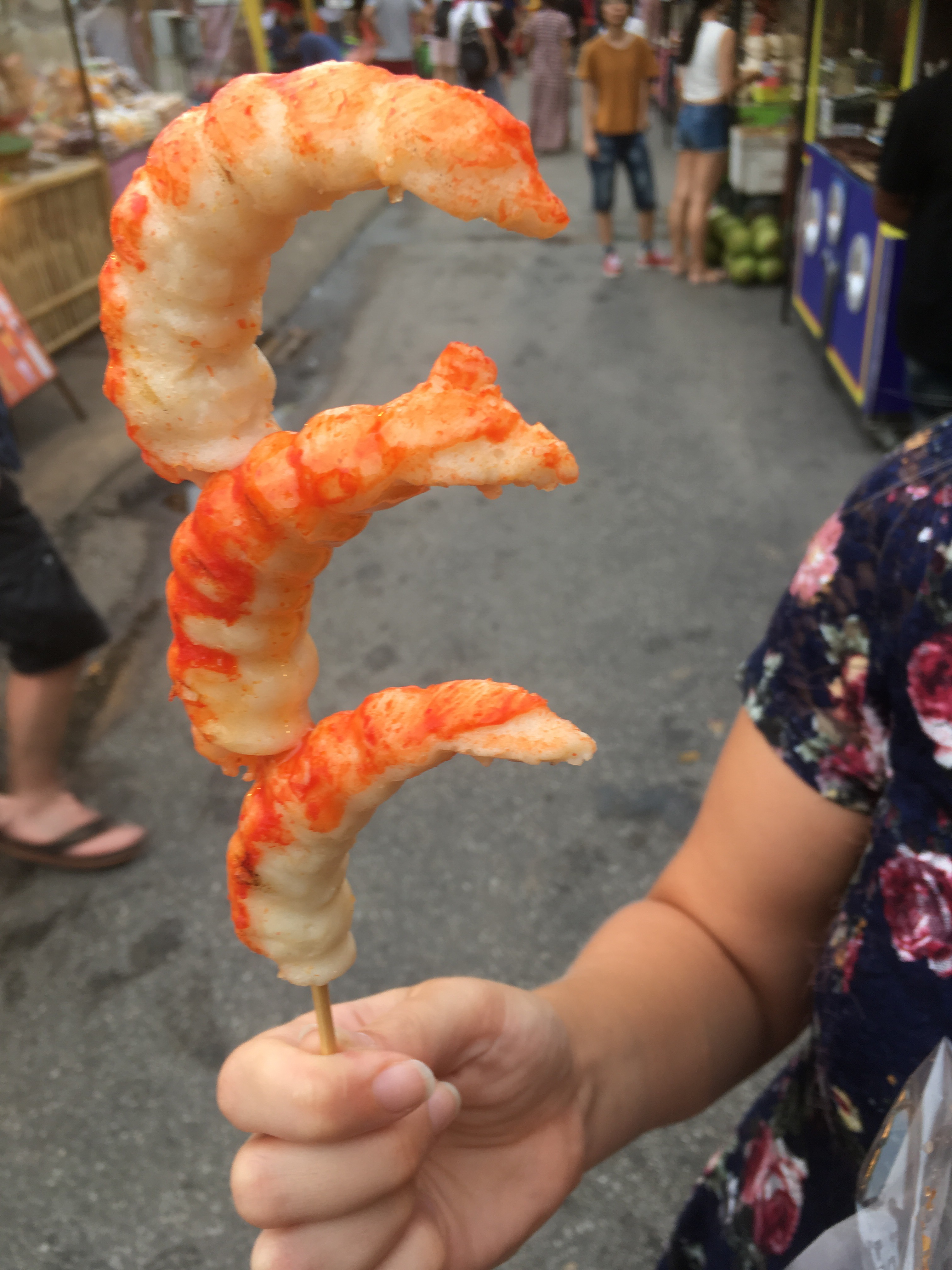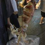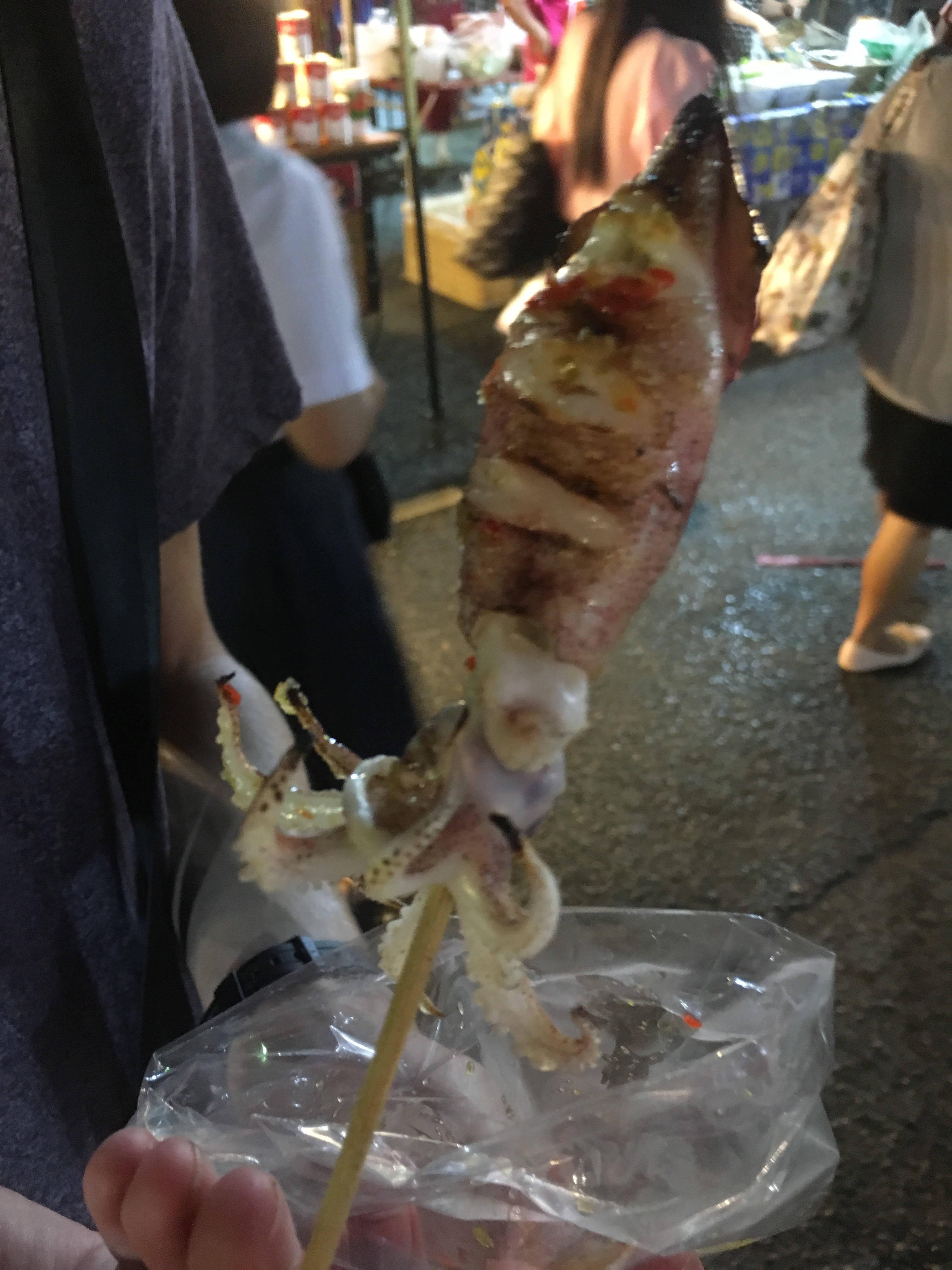 Paul was very excited about trying one of these squids on a stick. It was very spicy and he loved it.
