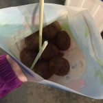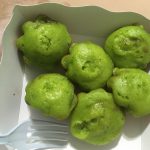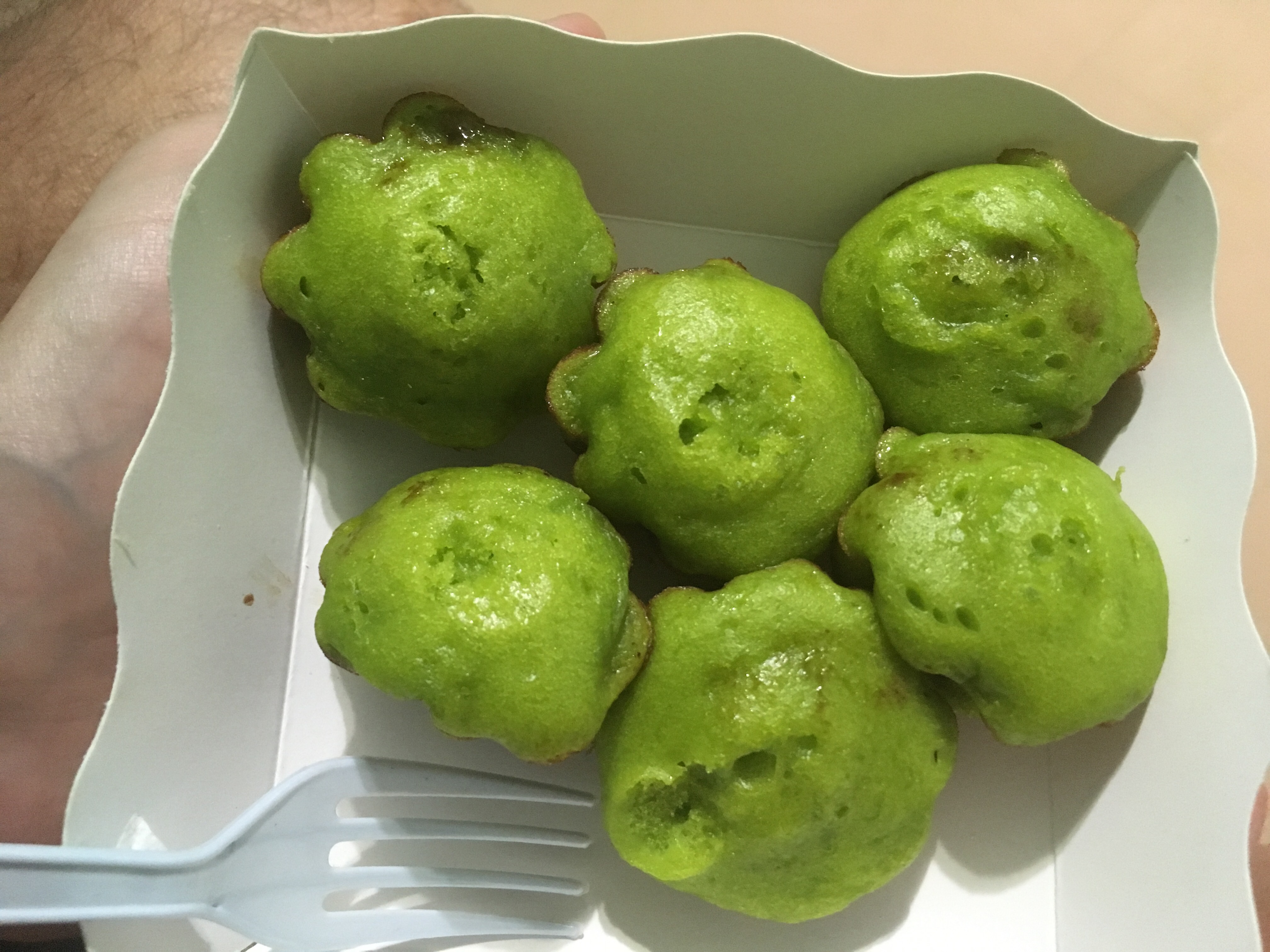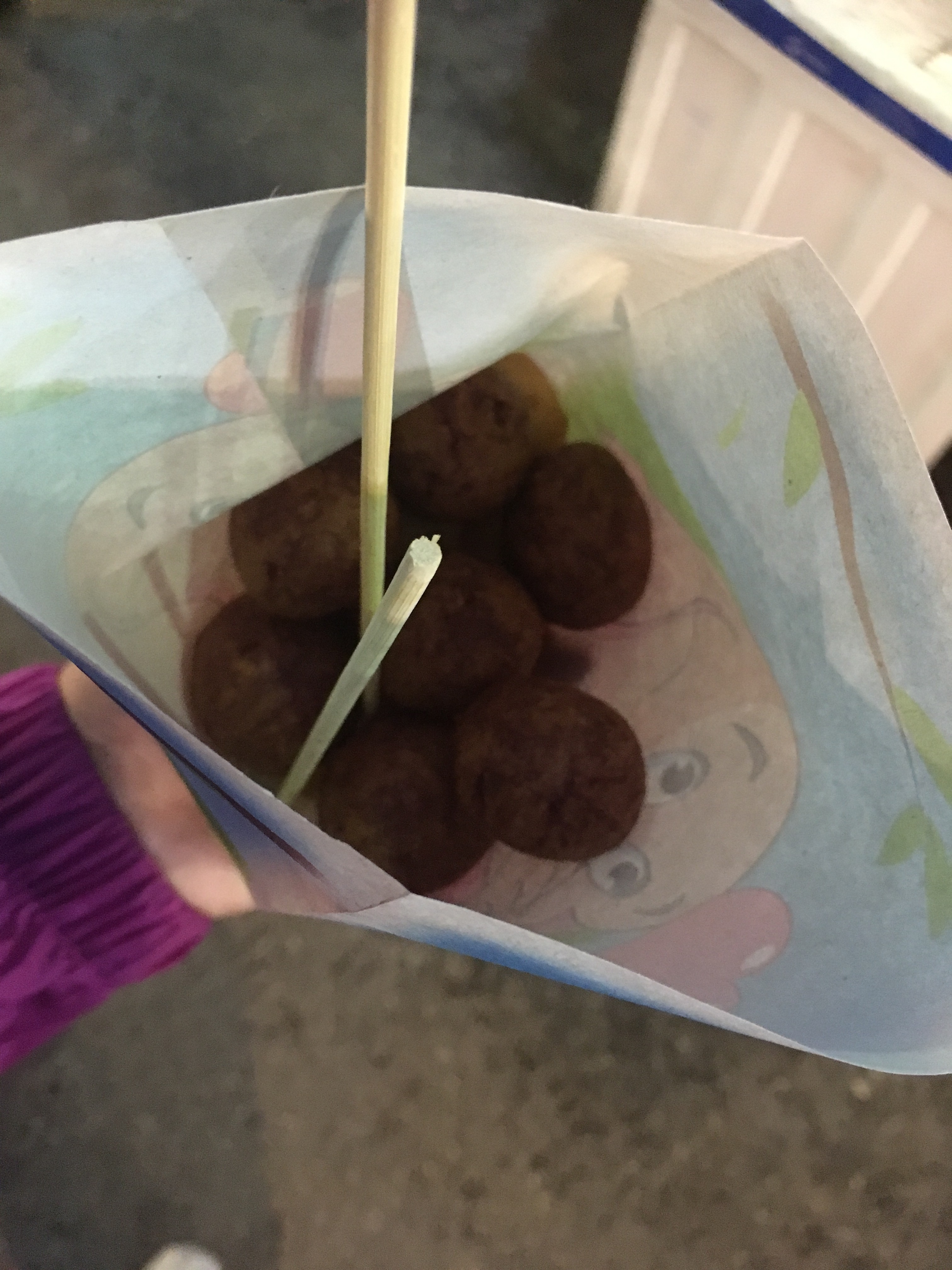 These are fried sweet potato balls. They feel quite rubbery really but they taste good.