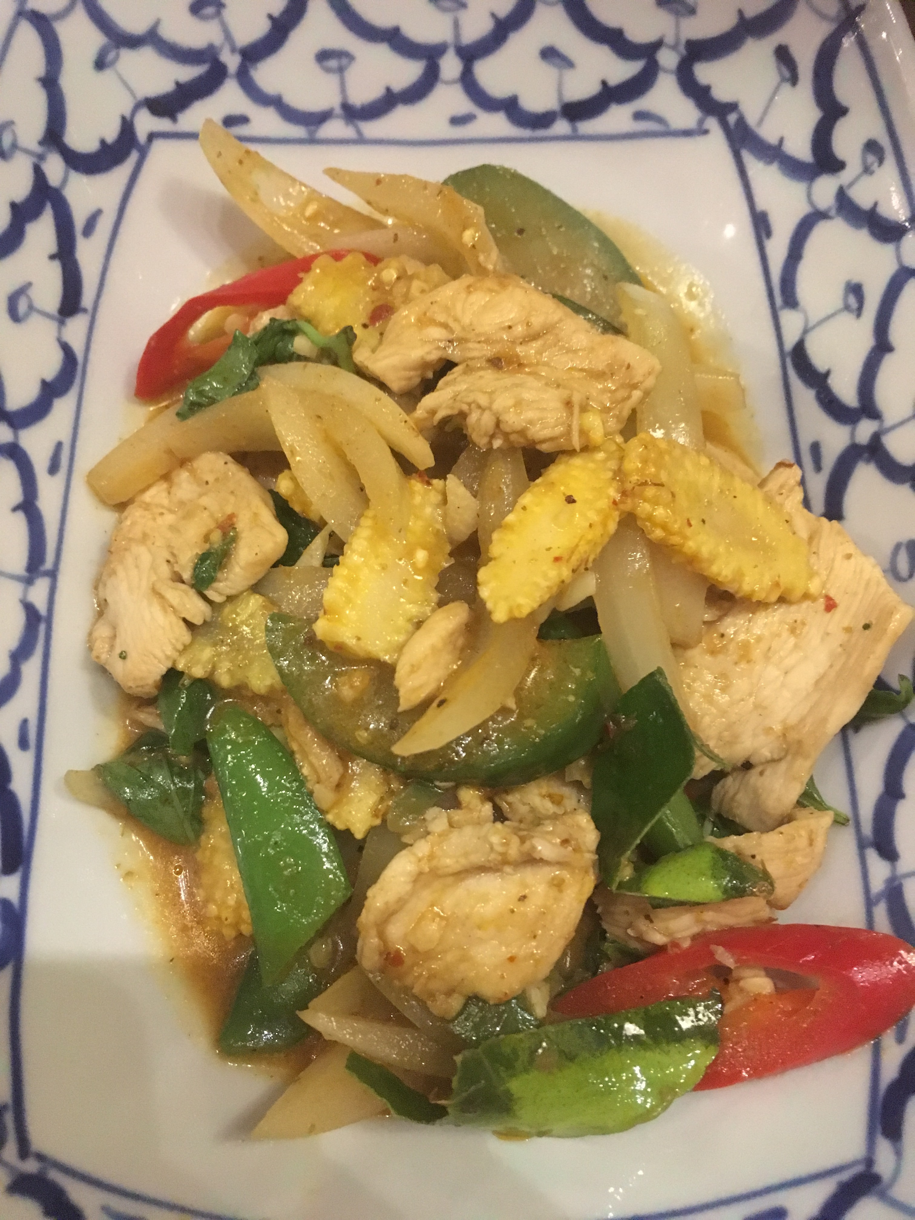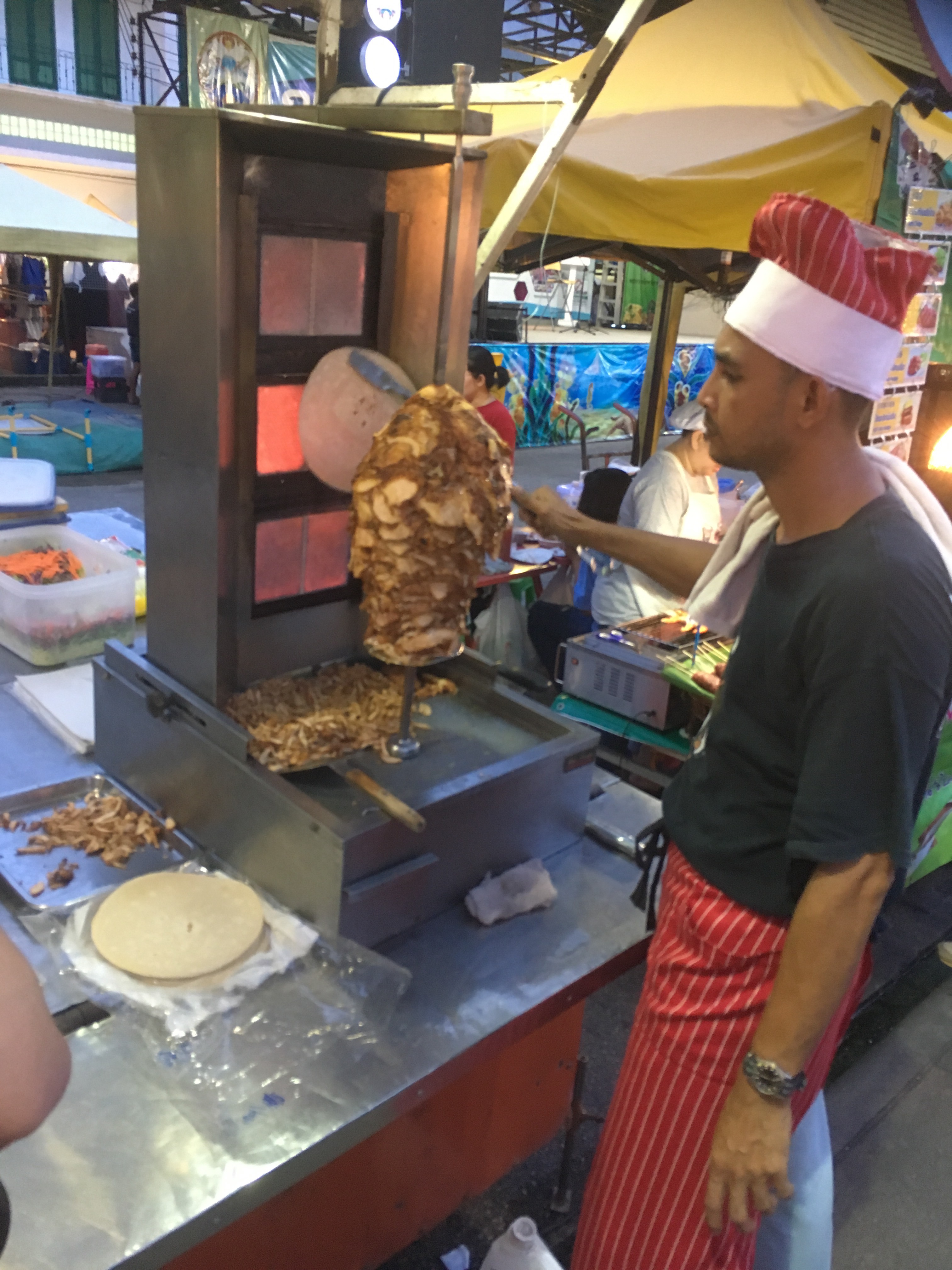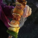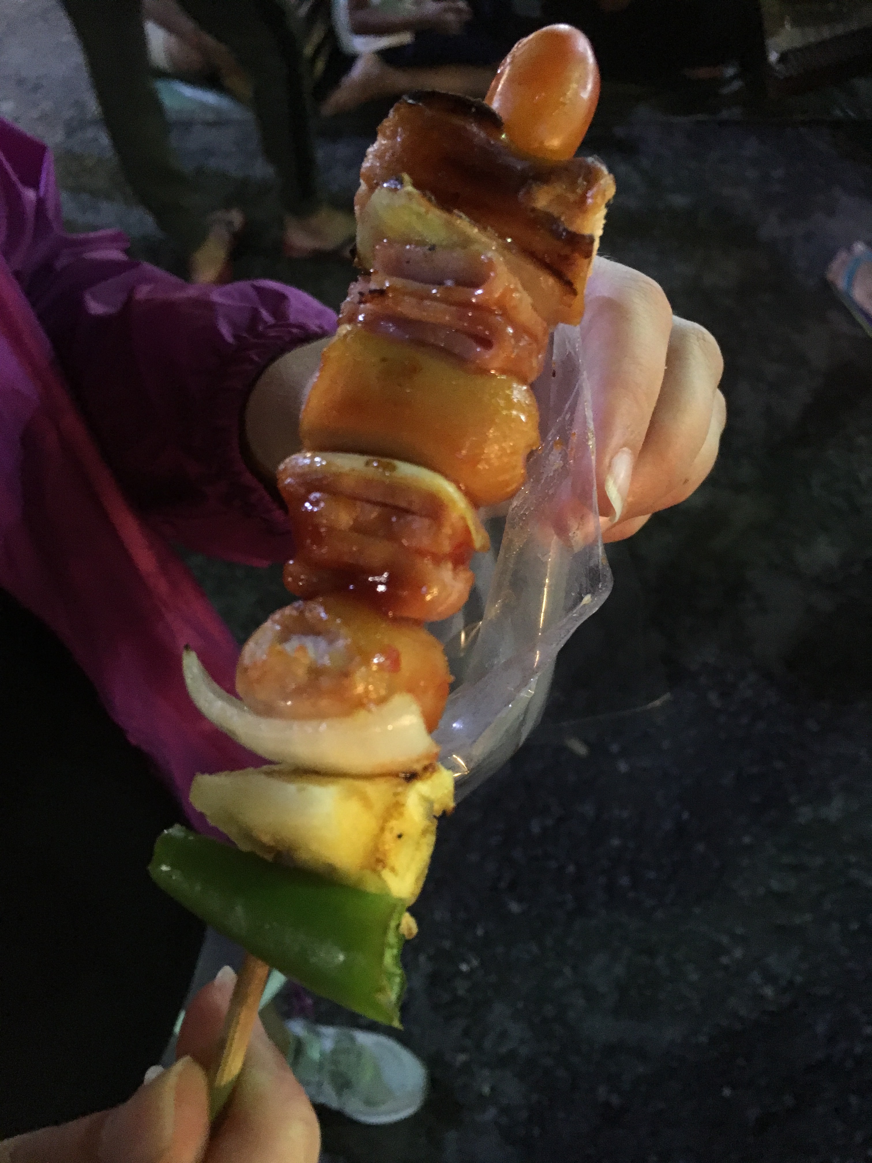 This was a sausage and bacon kebab with veg, pineapple and a very hot chilli! Tasty!