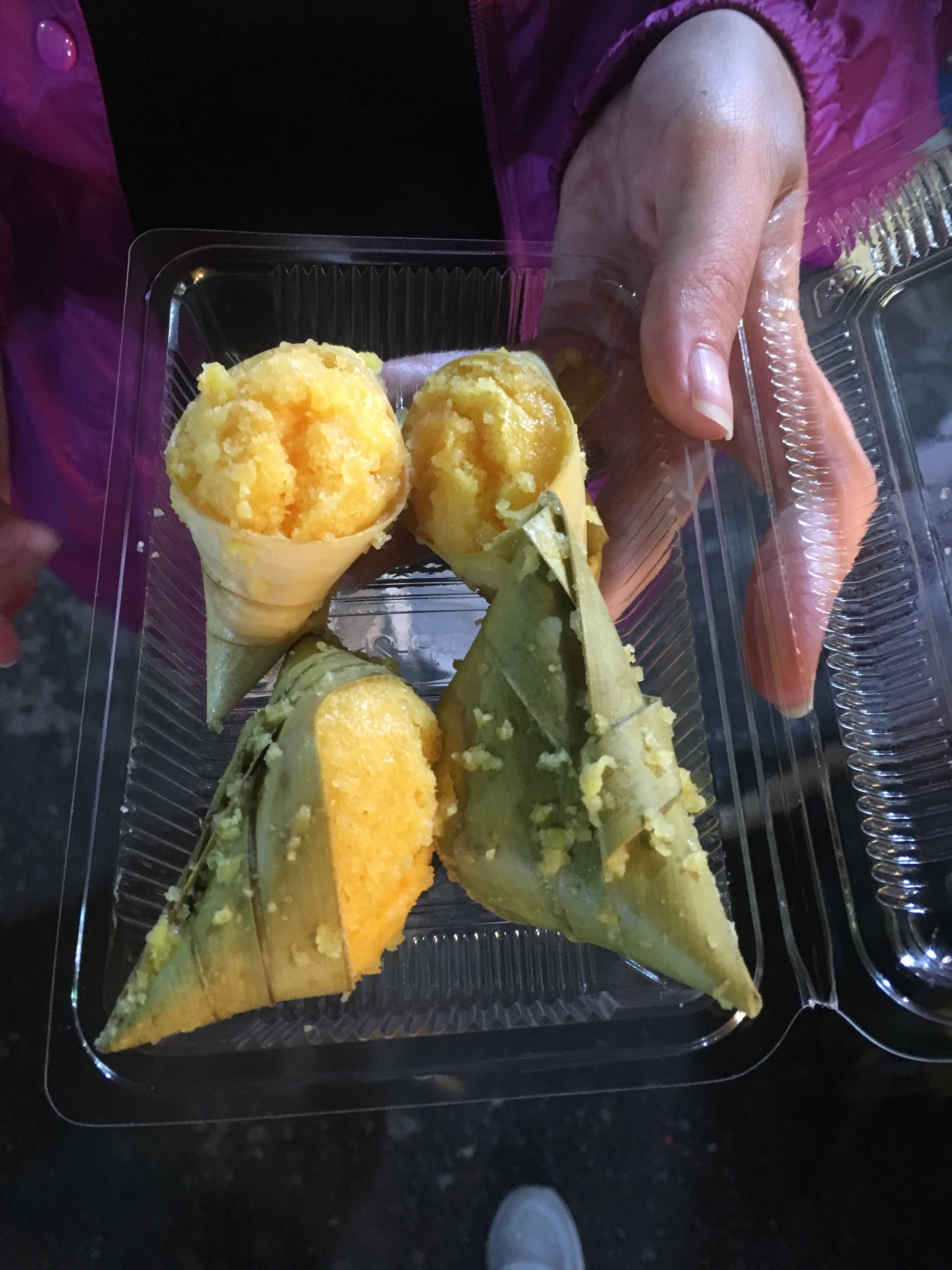 We got all confused here and were supposed to get the thing on the right but we got the things on the left. They were delicious anyway and were filled with yam, beans and shrimps apparently. We are going to try and get the things on the right later so I’ll update this bit later if we do!